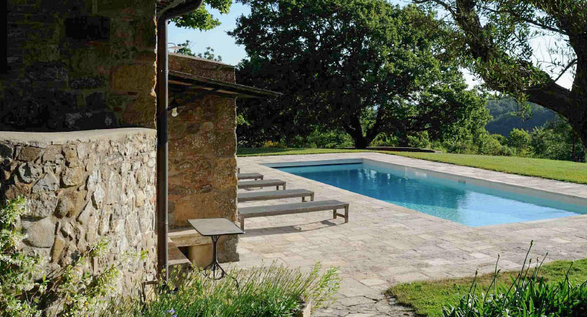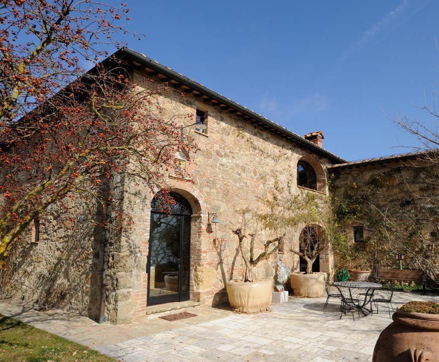 La connessione profonda tra spazi interni ed esterni caratterizza questo intervento su un casale nella Val d’Orcia.